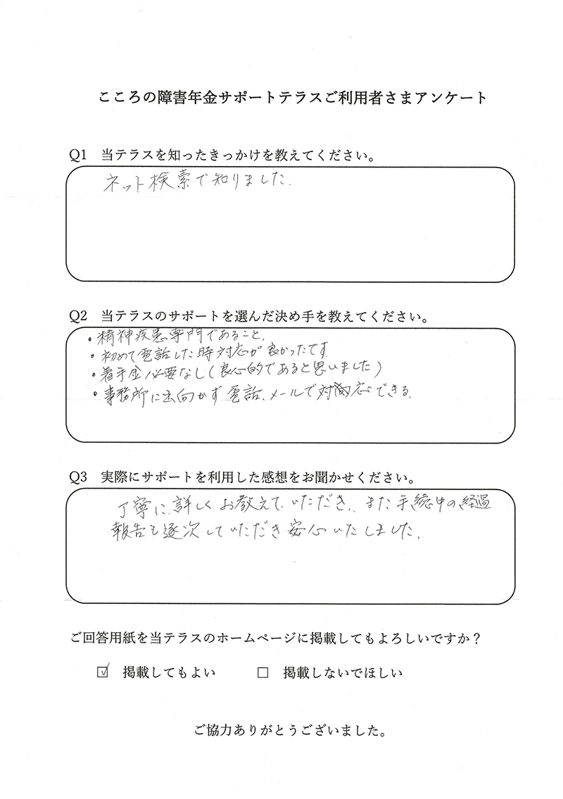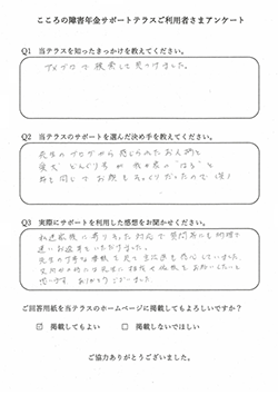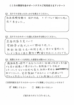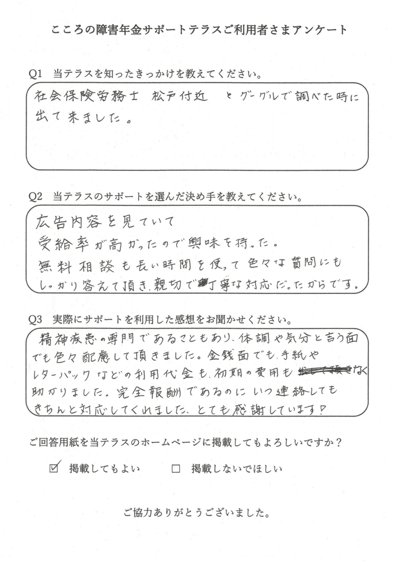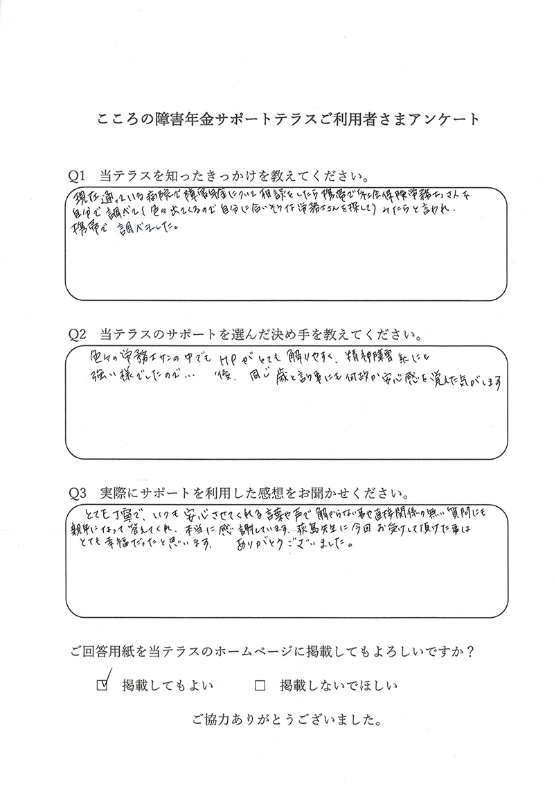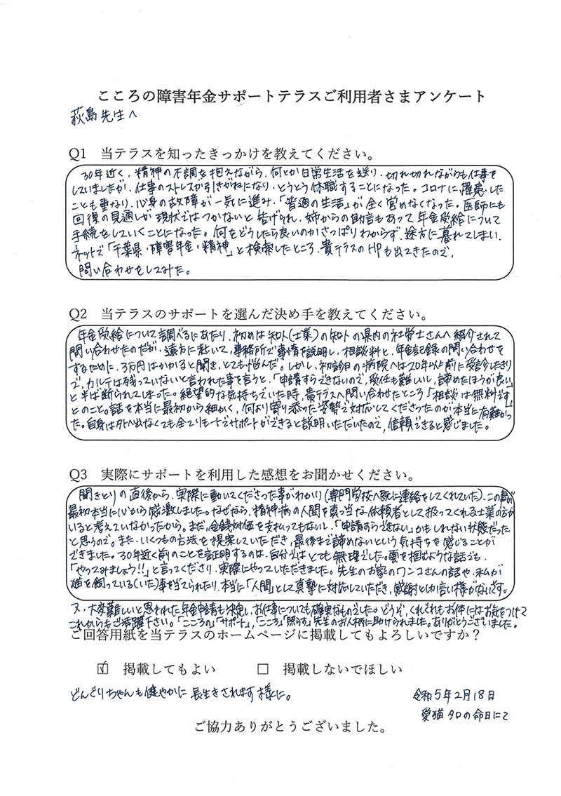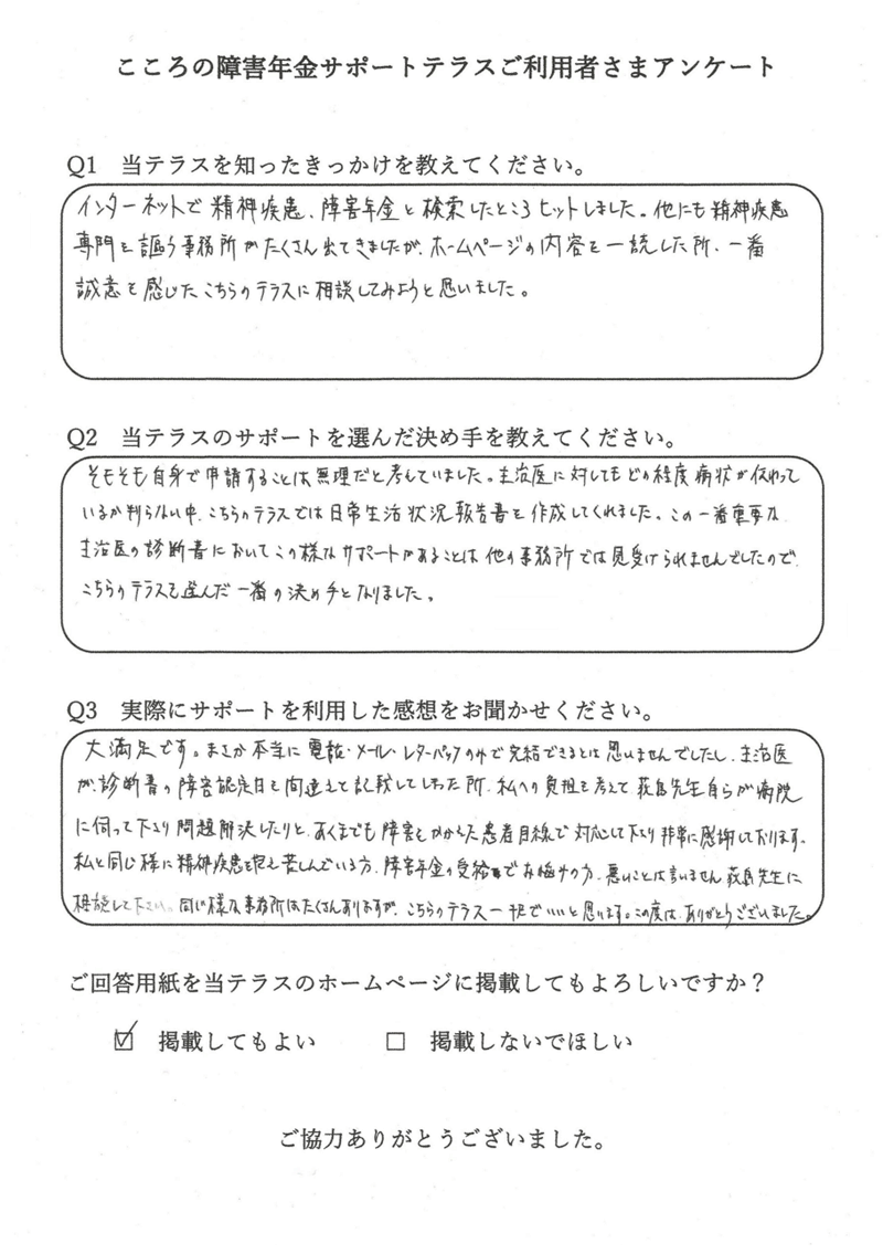 申込者様から「障害年金の支給決定通知が届きました」とご報告いただけたときに、この仕事をしていてよかったと感じます。 |